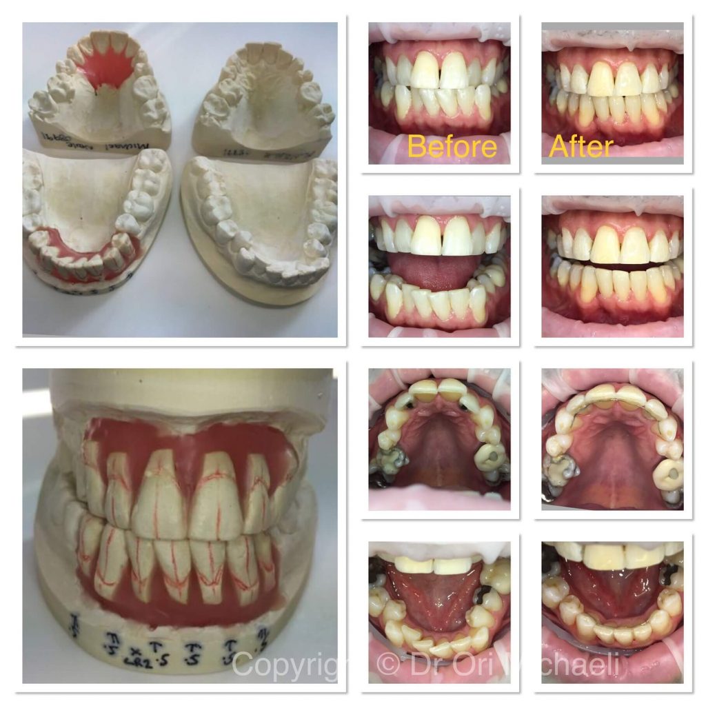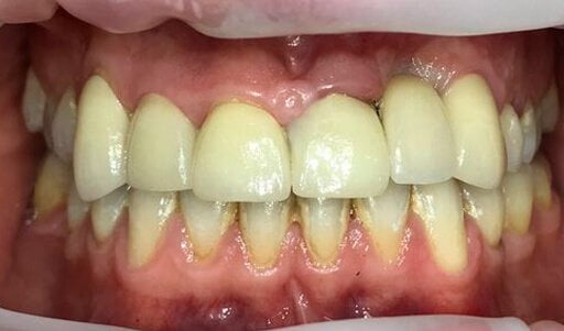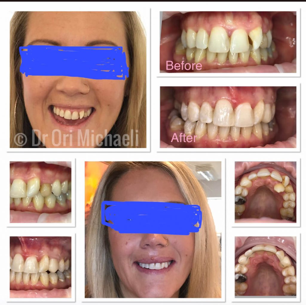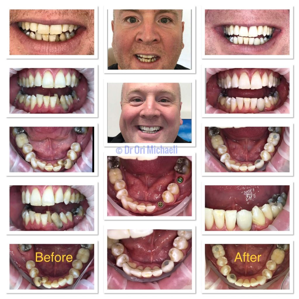 A full mouth rehabilitation including dental veneers, implants, root canal treatments and crowns.